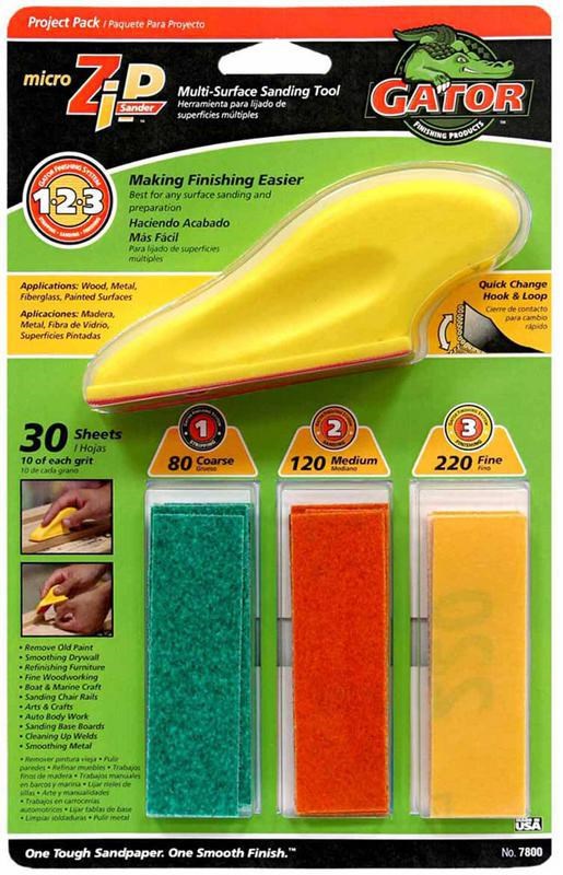 Includes sanding tool with Velcro hook & loop sanding sheets
