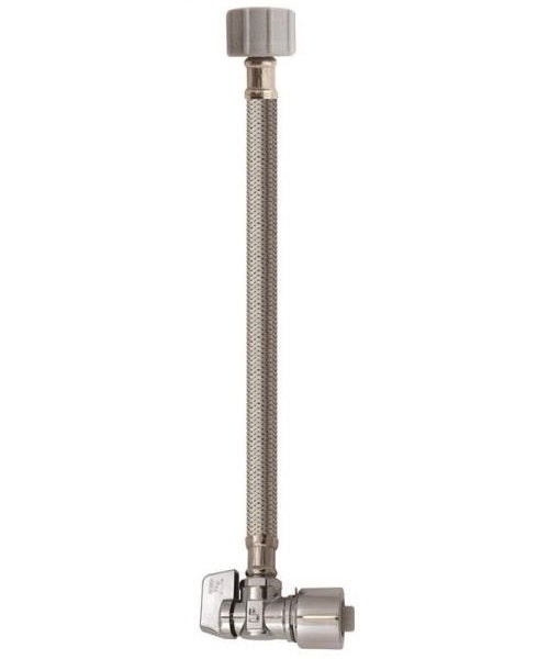 - Quarter-turn angle valve with 12" stainless steel braided supply line