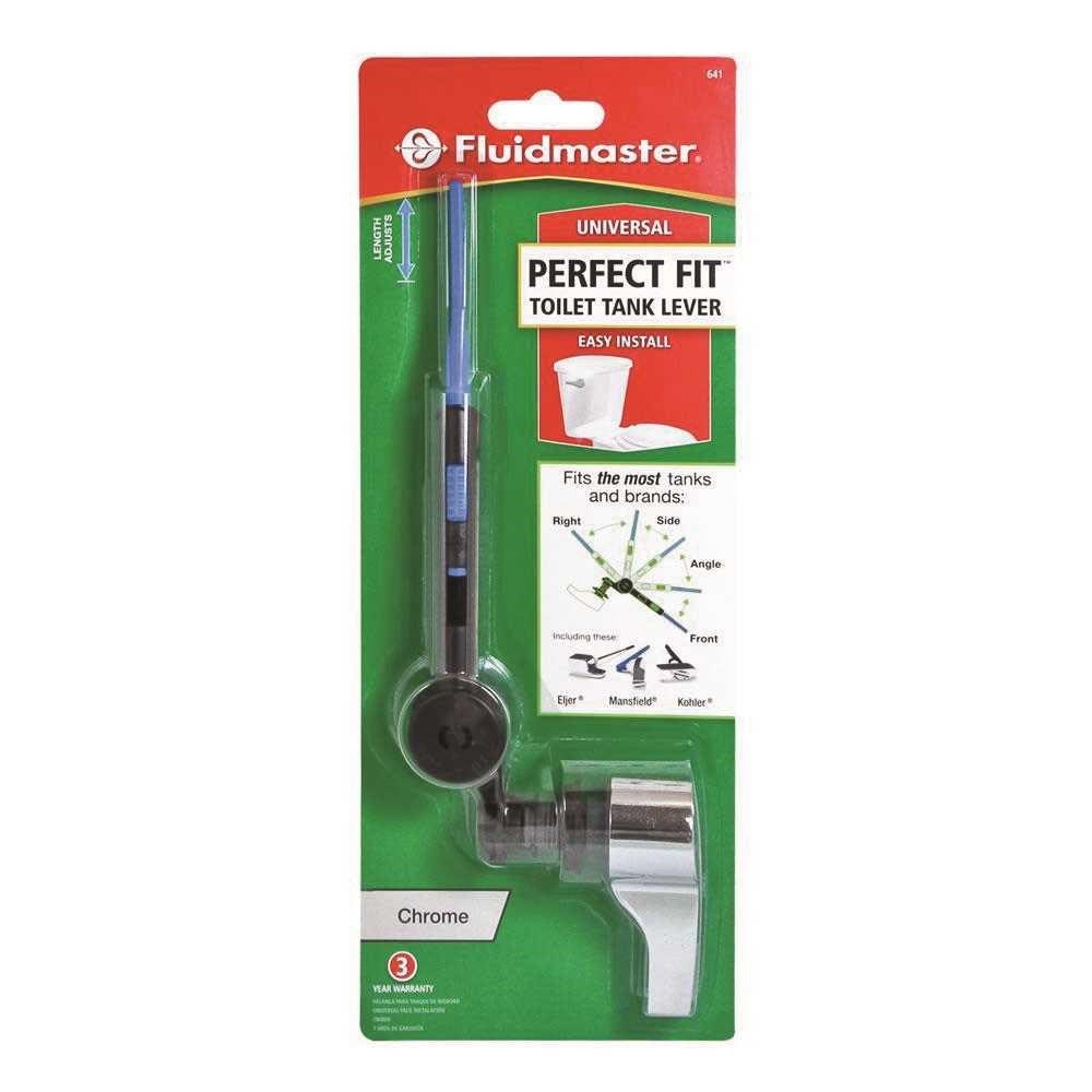 FLUIDMASTER 641 PERFECT FIT TANK LEVER - CHROMEThe Fluidmaster Perfect Fit toilet tank lever features a telescoping arm that adjusts to fit virtually any standard 2-piece toilet. No cutting or bending required - the arm rotates and extends to accommodate front, side, angle, and right-mount tank configurations.