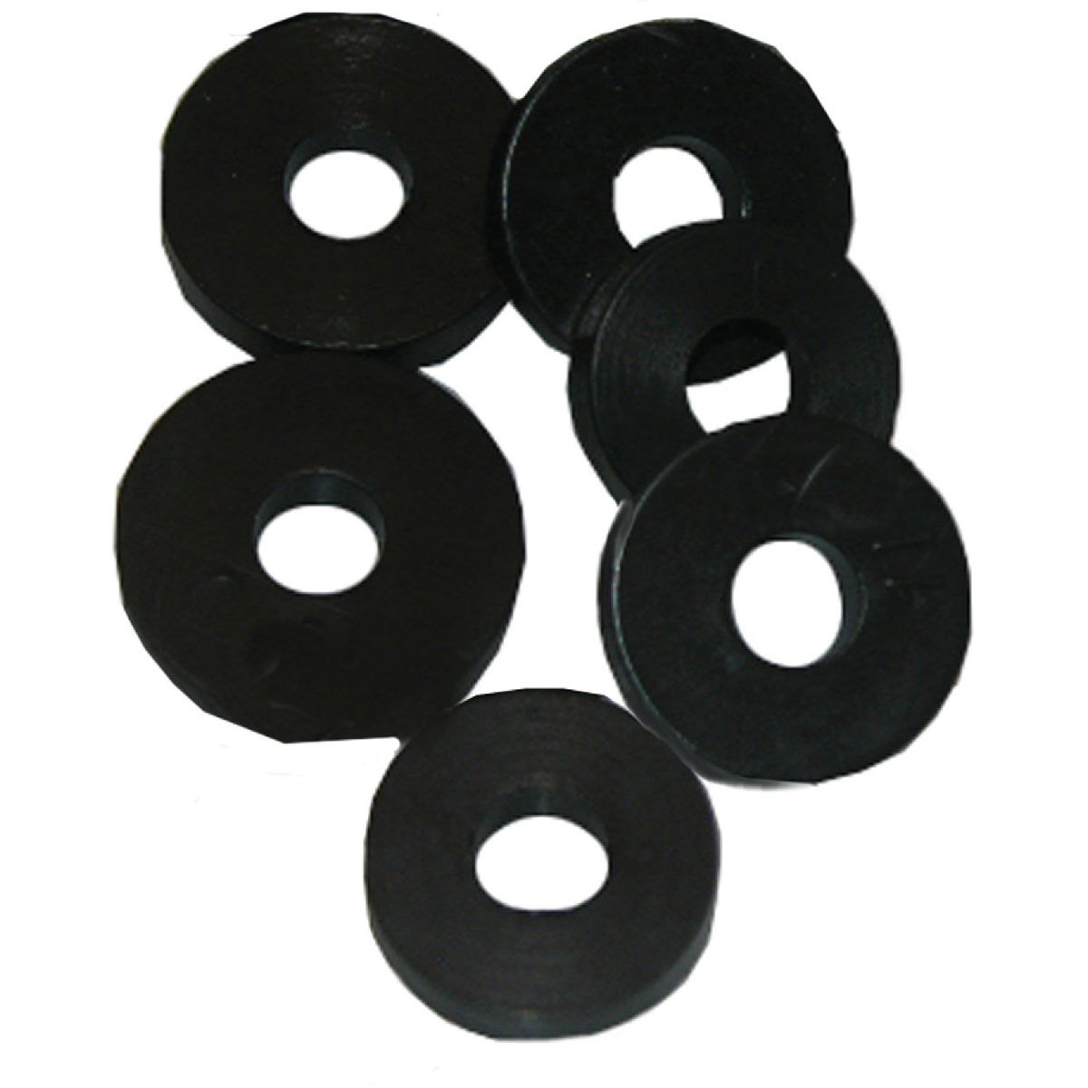 LARSEN 3/8"L FLAT BIBB FAUCET WASHERS - 6-PACKFlat bibb rubber washers for faucet stem repair. These 3/8" large (11/16" diameter) washers seat against the valve seat to stop drips. Compatible with hot and cold faucet stems.
