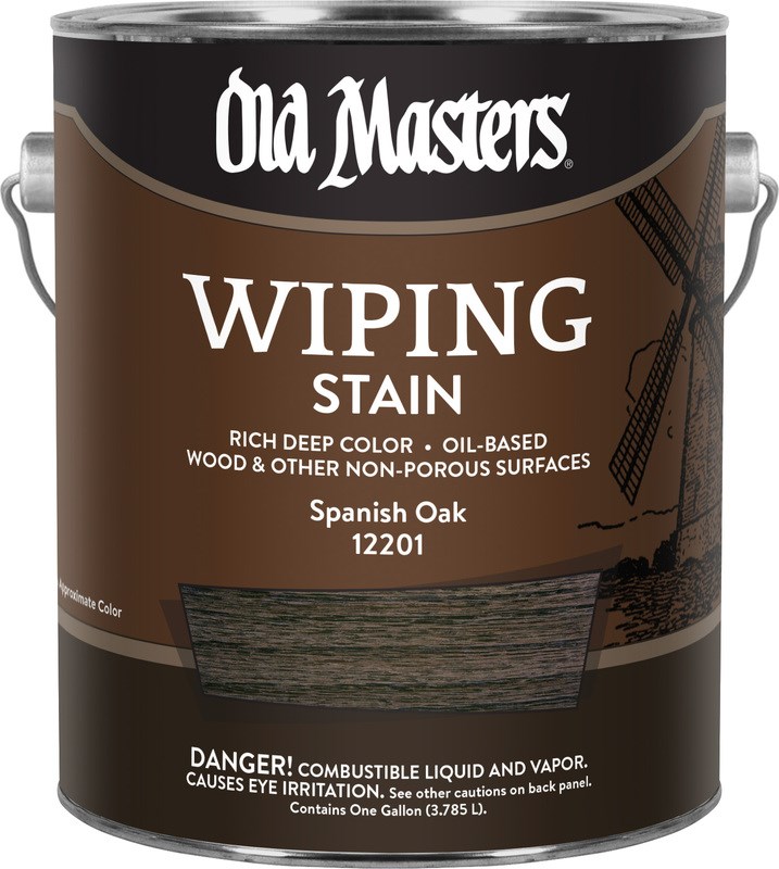 Old MastersĀ® Wiping Stain is a robust, oil-based masking stain for use on wood, fiberglass, metal and composition surfaces. This stain can also be used in wood graining or as an antiquing glaze over painted surfaces. Its thick, rich formula allows easy application and superior color control, necessary to achieve rich, uniform color on most surfaces in a single application. For interior use and suitable for exterior use when top coated with a protective clear finish.