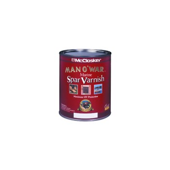 Superior to polyurethane because it is flexible enough to expand with the wood, resists cracking and peeling, and adheres well to oily woods like teak and mahogany. Flows on freely for easy brushing. Not suitable for continuous submersion. The strongest name in clear protection is McCloskey® Man O'War® Spar Marine Varnish. Use on interior and exterior wood surfaces to protect and beautify for years to come! Don't trust your exterior wood doors, furniture and trim to anything but the best... Man O'War® Spar Marine Varnish.