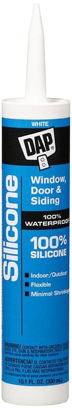 DAP® 100% Silicone Window, Door & Siding Sealant is an all-purpose, one component, acetoxy cure sealant ideal for indoor/outdoor use. It provides a watertight, flexible seal that won’t crack, crumble or shrink. Once cured, it is unaffected by temperature extremes (-40°F to 400°F).