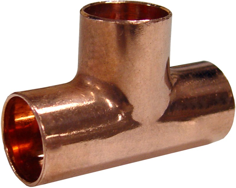 Manufactured to ASME B16.22 standards for wrought copper solder-joint pressure fittings. Suitable for water supply lines, hydronic heating systems, and general plumbing applications requiring a branch connection.