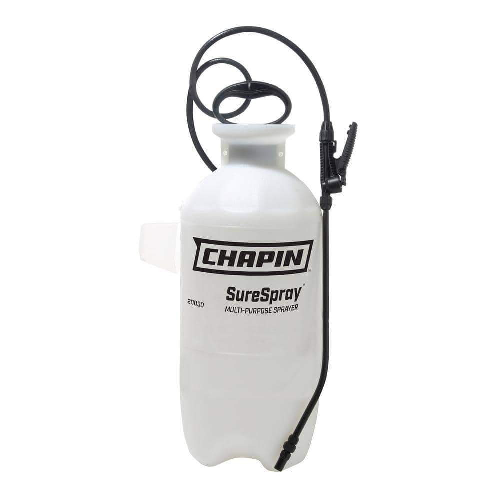 CHAPIN 3-GALLON SURESPRAY POLY SPRAYERVersatile lawn and garden sprayer with a translucent 3-gallon poly tank and funnel-top opening for easy, no-mess filling. The SureSpray anti-clog filter prevents nozzle blockages, while nitrile seals ensure chemical compatibility with common fertilizers, weed killers, and pesticides.