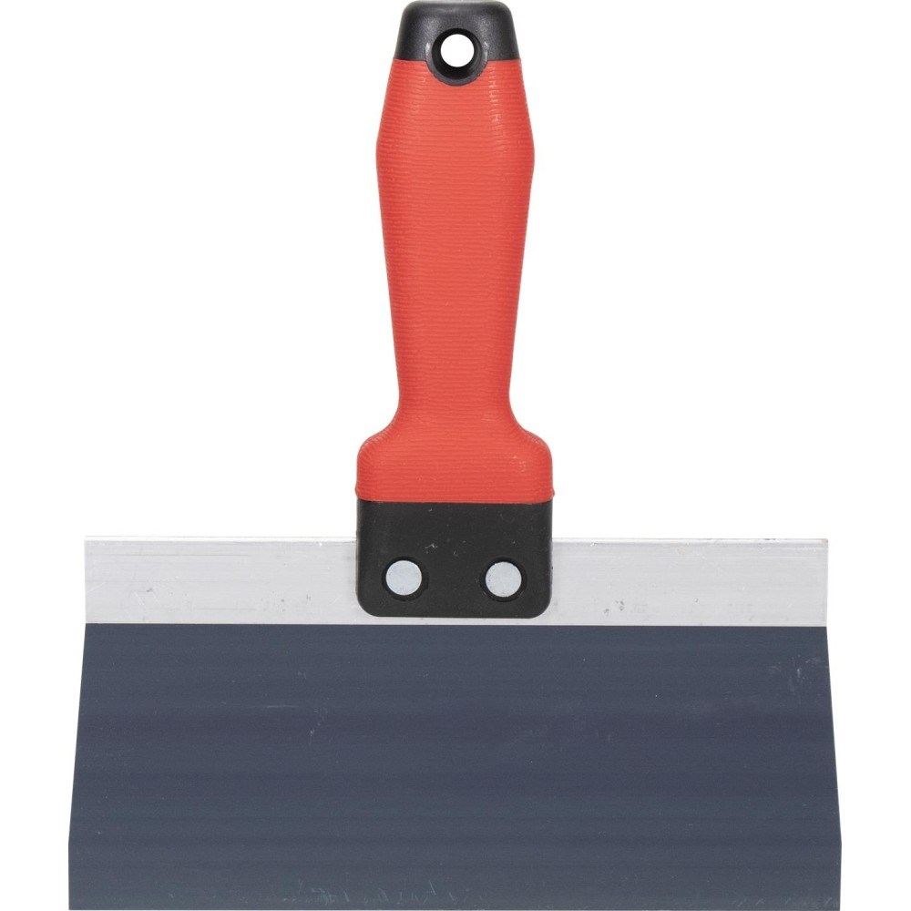 MARSHALLTOWN 8" BLUE STEEL TAPING KNIFEProfessional drywall taping knife with a 1095 blue spring steel blade for superior wear resistance and consistent flex during taping, mudding, and joint compound application. The 8" width is ideal for embedding tape, filling screw holes, and applying thin coats. Tuff-Grip handle provides a non-slip textured surface for comfort and control.