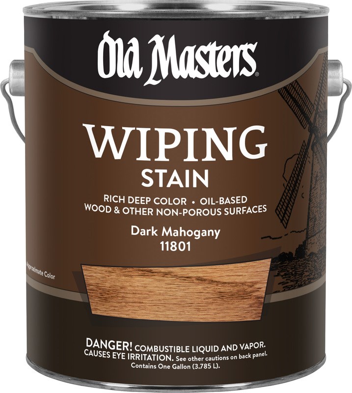 Old MastersĀ® Wiping Stain is a robust, oil-based masking stain for use on wood, fiberglass, metal and composition surfaces. This stain can also be used in wood graining or as an antiquing glaze over painted surfaces. Its thick, rich formula allows easy application and superior color control, necessary to achieve rich, uniform color on most surfaces in a single application. For interior use and suitable for exterior use when top coated with a protective clear finish.