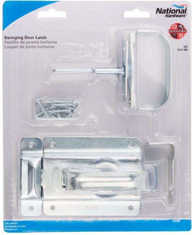 - A heavy duty latch designed for swinging doors on storage sheds barns, out-buildings, etc