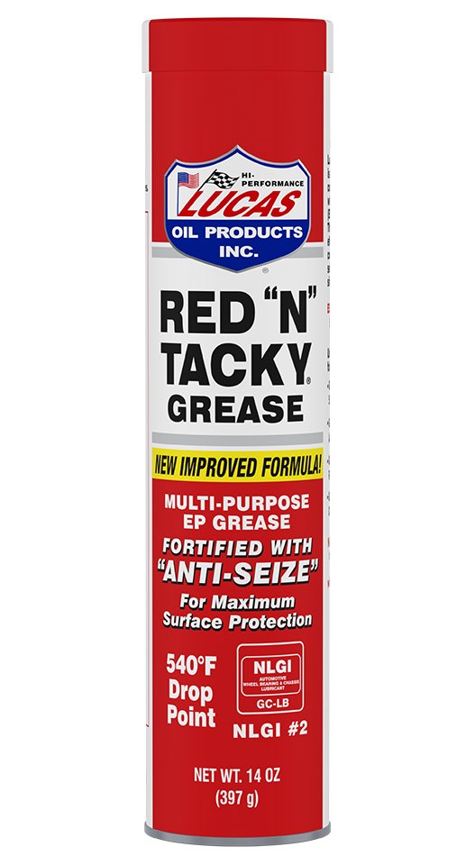 LUCAS OIL RED "N" TACKY MULTI-PURPOSE GREASE - 14 OZLucas Oil Red "N" Tacky is a premium lithium complex grease that stays where you put it. The extra-tacky formulation resists sling-off, wash-off, and squeeze-out under heavy loads. Rust and oxidation inhibitors protect metal surfaces in wet and harsh conditions. Ideal for automotive, agricultural, marine, and industrial applications.