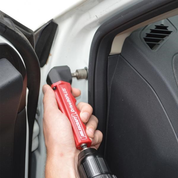 MILESCRAFT DRIVE90PLUS IMPACT READY RIGHT ANGLE DRILL ATTACHMENTThe Drive90PLUS extends the reach of your power drill into tight spaces as close as 1-1/2" from an obstacle. Impact-rated for use with impact drivers up to 1500 in-lbs at 3000 RPM. Simply insert the 1/4" hex shank into your drill and gain access to close-quarter work areas.