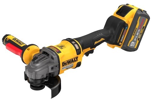 - Kit includes: grinder, (2) 9.0Ah FLEXVOLT batteries, fast charger, side handle, guard, wrench, and kit bag