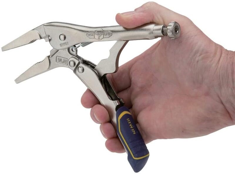 IRWIN LONG NOSE LOCKING PLIERS WITH WIRE CUTTER - 9"These Irwin 9LN long nose locking pliers feature a 20% reduced hand span for improved control and reduced hand strain. The long straight nose provides easy access to tight spaces, while the built-in wire cutter adds versatility.