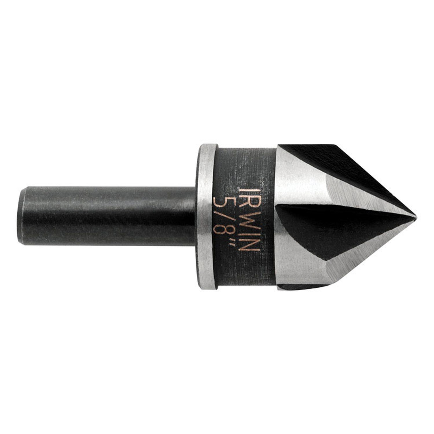 IRWIN HIGH SPEED STEEL COUNTERSINK - 5/8\"Create clean, precise countersunk holes in metal, wood, and plastic with this Irwin 5/8\" high speed steel countersink. The five-flute design reduces vibration for smoother drilling and longer tool life, while the black oxide finish protects against corrosion.