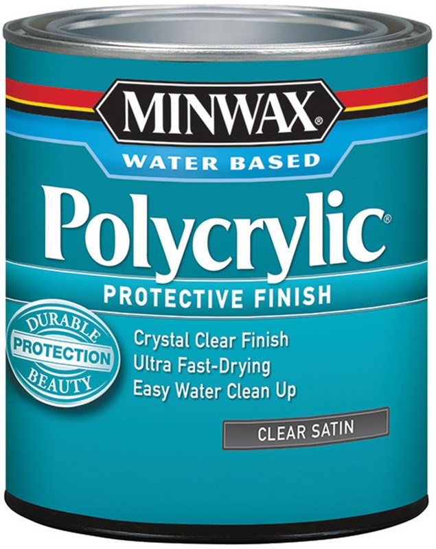 Minwax® Polycrylic® Protective Finish is a crystal clear, ultra fast-drying protective topcoat for use on interior wood surfaces including furniture, trim, doors, cabinets and paneling. It can be used over bare wood and both oil-based and water-based stains. Polycrylic® has little odor, cleans up easily with soap and water and can be recoated in only 2 hours. Minwax® Polycrylic® resists damage from abrasion, scuffing, chipping, water, alcohol and other common household chemicals.