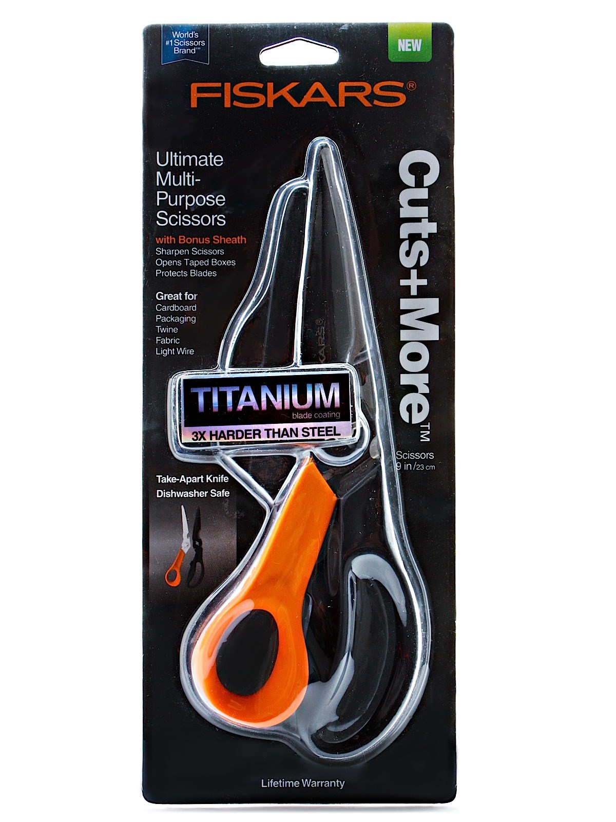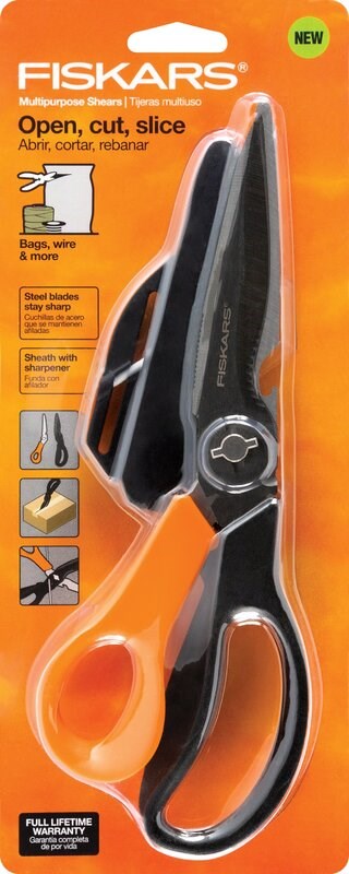 Fiskars 9 in. All-Purpose Scissors are built for versatility and long-lasting sharpness. Fully hardened, precision-ground steel blades stay sharp through heavy cutting and can be separated at the hinge to use as a single-sided knife for specialty cuts. An integrated wire cutter handles light wire, rope, and cable. Ergonomically sculpted handles reduce hand fatigue during extended use, making these scissors suitable for kitchen, craft, office, and general household tasks.