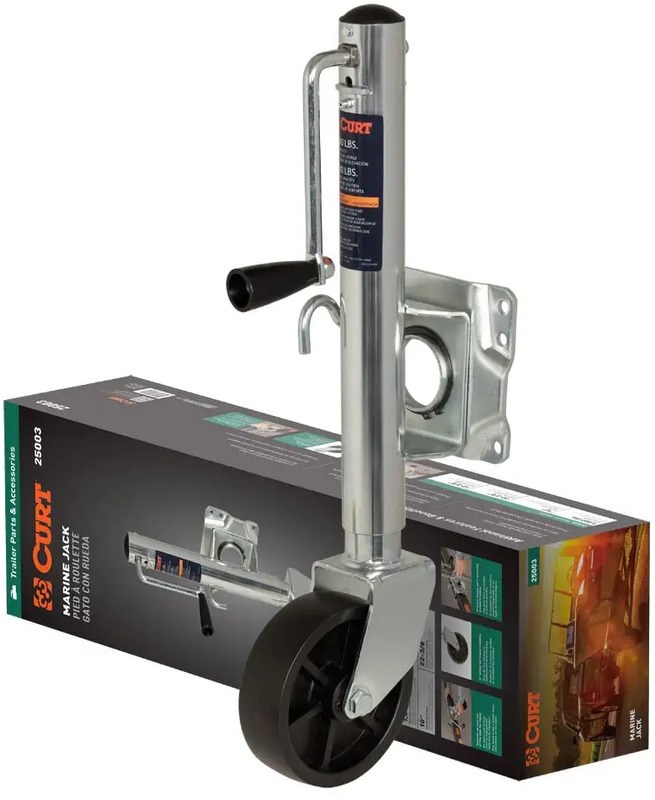 CURT MARINE TRAILER JACK WITH 6" WHEELMake boat trailer coupling easier with this CURT marine jack designed specifically for marine applications. The 6-inch wheel allows for greater mobility when maneuvering your trailer, while the zinc finish provides excellent corrosion protection in wet environments.