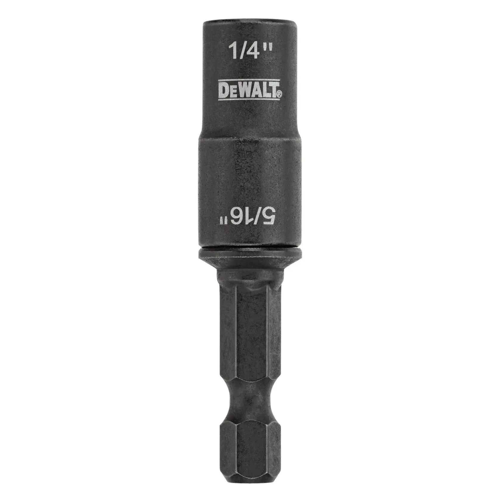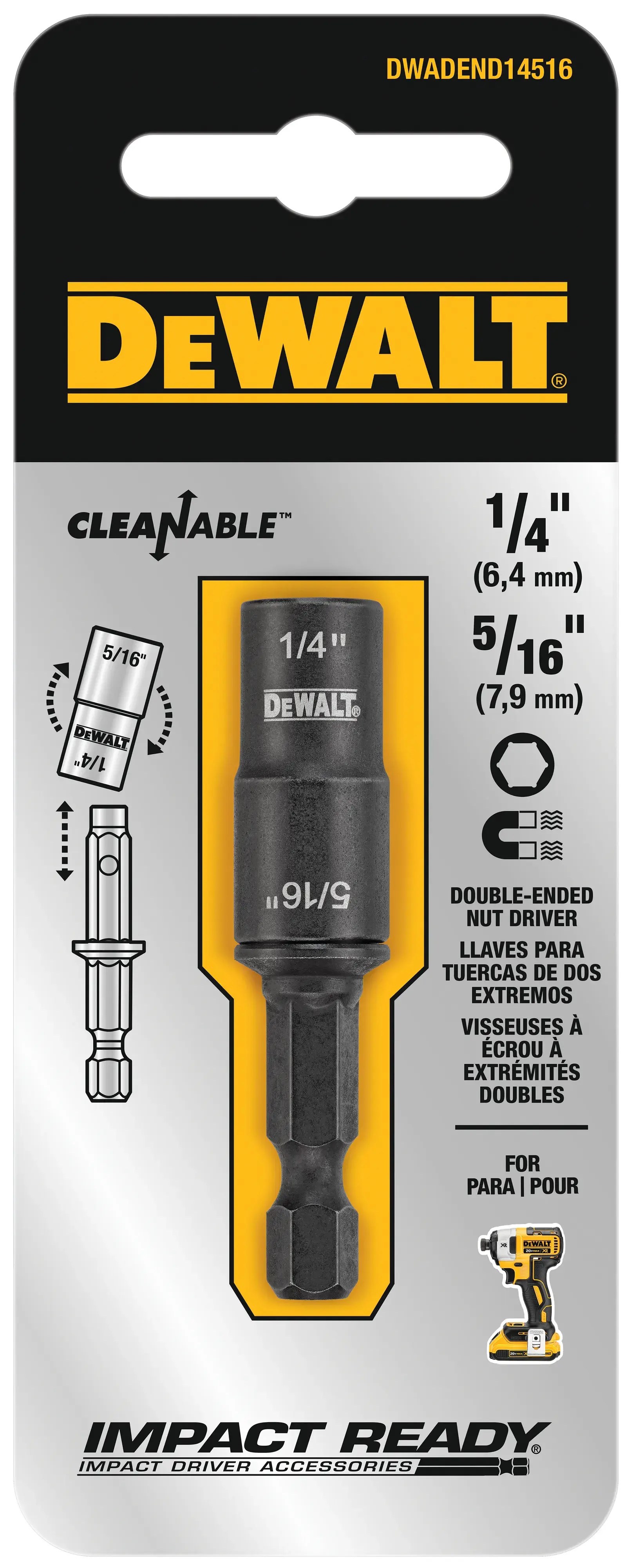DEWALT DOUBLE ENDED DETACHABLE NUT DRIVERSwitch between 1/4" and 5/16" hex sizes without changing bits using this double-ended nut driver from DeWalt. The detachable design allows easy cleaning, while an industrial-strength magnet provides maximum fastener retention during driving.