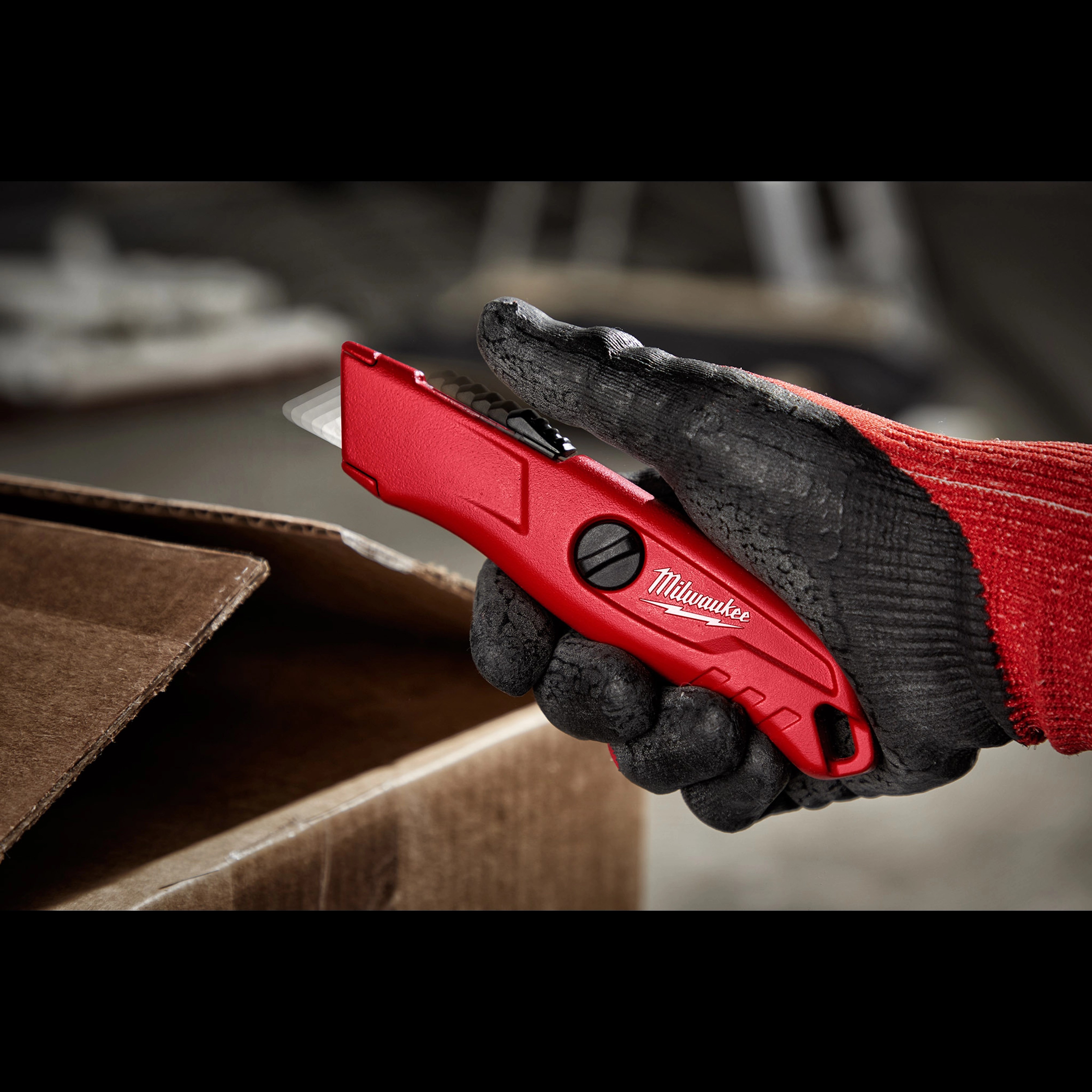 MILWAUKEE SELF-RETRACTING UTILITY KNIFESelf-retracting utility knife with an all-metal body designed for safety-conscious jobsites. The blade automatically retracts when the button is released, preventing accidental cuts.