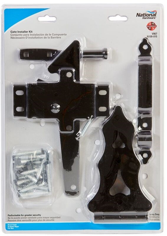 Decorative gate kit includes two 8" hinges, one latch and one pull