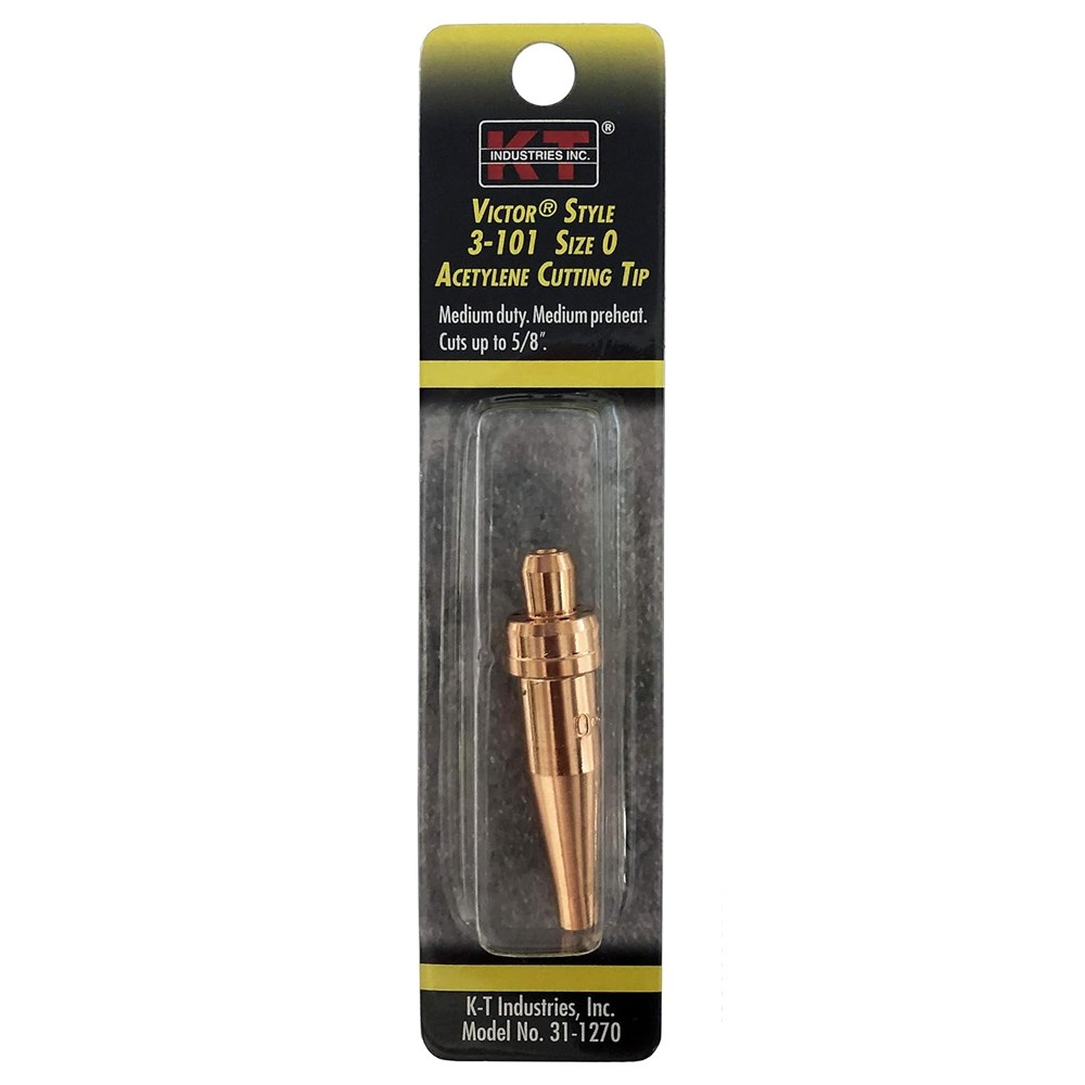 K-T INDUSTRIES 3-101 OXY-ACETYLENE CUTTING TIP - SIZE 0This K-T Industries 3-101 series cutting tip is designed for oxy-acetylene cutting of thin steel. Manufactured from high-quality copper and brass bar stock for reliable heat transfer and consistent flame characteristics. Every tip is performance tested prior to shipment to ensure clean, accurate cuts.