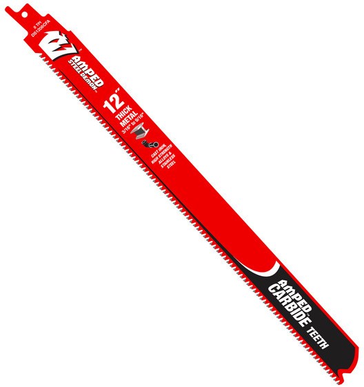 DIABLO AMPED STEEL DEMON RECIP BLADE - 12", 8 TPIThe Diablo Amped Steel Demon 12" carbide-tipped reciprocating saw blade is engineered for cutting thick metals from 3/16" to 9/16". Featuring hi-performance carbide and the industry-first Black I.C.E. coating, this blade delivers up to 100X longer cutting life in metal-cutting applications including durable alloys, cast iron, and stainless steel.