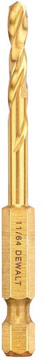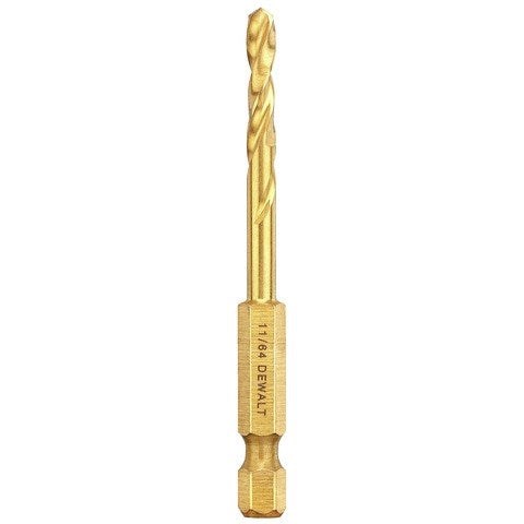DEWALT IMPACT READY TITANIUM DRILL BIT - 11/64"The DeWalt DD5111 Impact Ready Titanium Drill Bit is ground from a single solid piece of high speed steel for up to 5 times the durability of conventional 2-piece drill bits. The 1/4" hex shank fits directly into impact drivers, making it ideal for drilling through metal, wood, and plastic on the jobsite without switching tools.