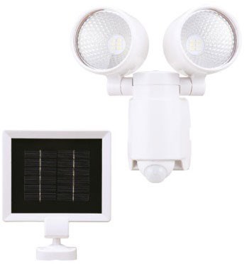 CYBER TECH 6W SOLAR LED DUAL-HEAD MOTION SECURITY LIGHT - WHITEThe Cyber Tech LF6MH2-SLR-WH/DL is a dual-head solar-powered security light with a built-in motion sensor and dusk-to-dawn photocell. The 6-watt LED delivers 560 lumens of 6500K daylight illumination, providing bright coverage for walkways, garages, and entry areas without any electrical wiring.