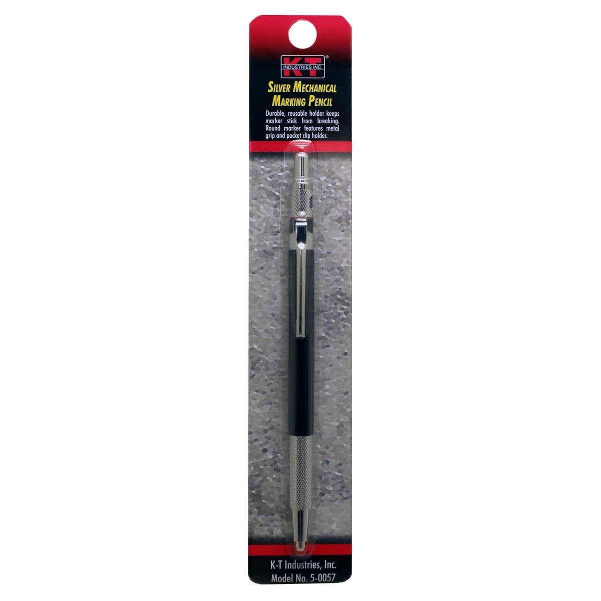 K-T INDUSTRIES SILVER STREAK MECHANICAL MARKING PENCILRefillable mechanical marking pencil that makes fine, high-visibility silver lines on metal surfaces. The marks won't rub off during handling and are resistant to flame and torch heat, remaining visible even through a welding filter plate. No sharpening required - the mechanical advance keeps a consistent marking point. Features a pocket clip for convenient carry.