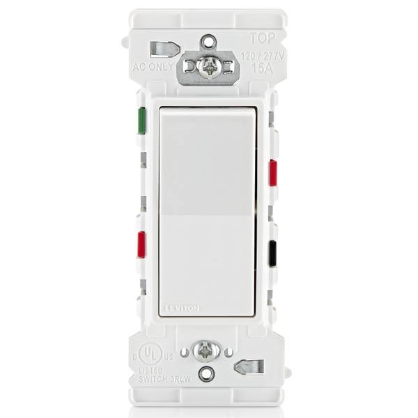 LEVITON DECORA 3-WAY ROCKER GROUNDING SWITCHThe Leviton Decora 3-way switch provides reliable lighting control from two locations. Lever-action terminals accept wire with a simple push-click motion - no screwdriver needed. The sleek Decora rocker style complements any standard Decora wall plate.