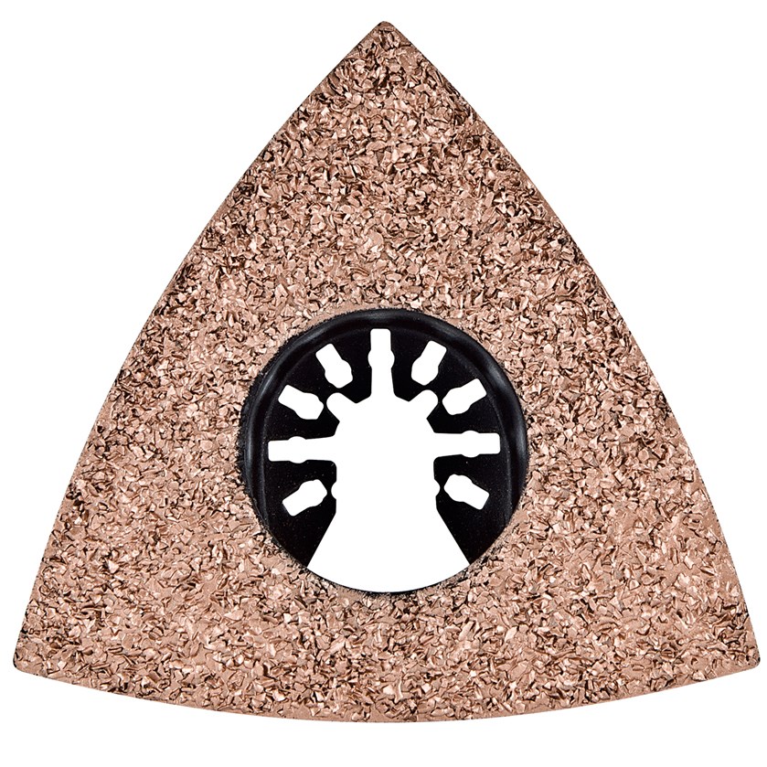 GENESIS 3-1/8" TRIANGULAR CARBIDE OSCILLATING RASPGenesis 3-1/8" triangular carbide rasp for oscillating multi-tools. The tungsten carbide grit coating delivers aggressive material removal on wood, tile adhesive, cement, mortar, and grout. The triangular shape excels in corners and tight angles where flat blades cannot reach. Universal quick-fit mount is compatible with most major oscillating tool brands including DeWalt, Milwaukee, Bosch, Fein, Ridgid, and Ryobi.