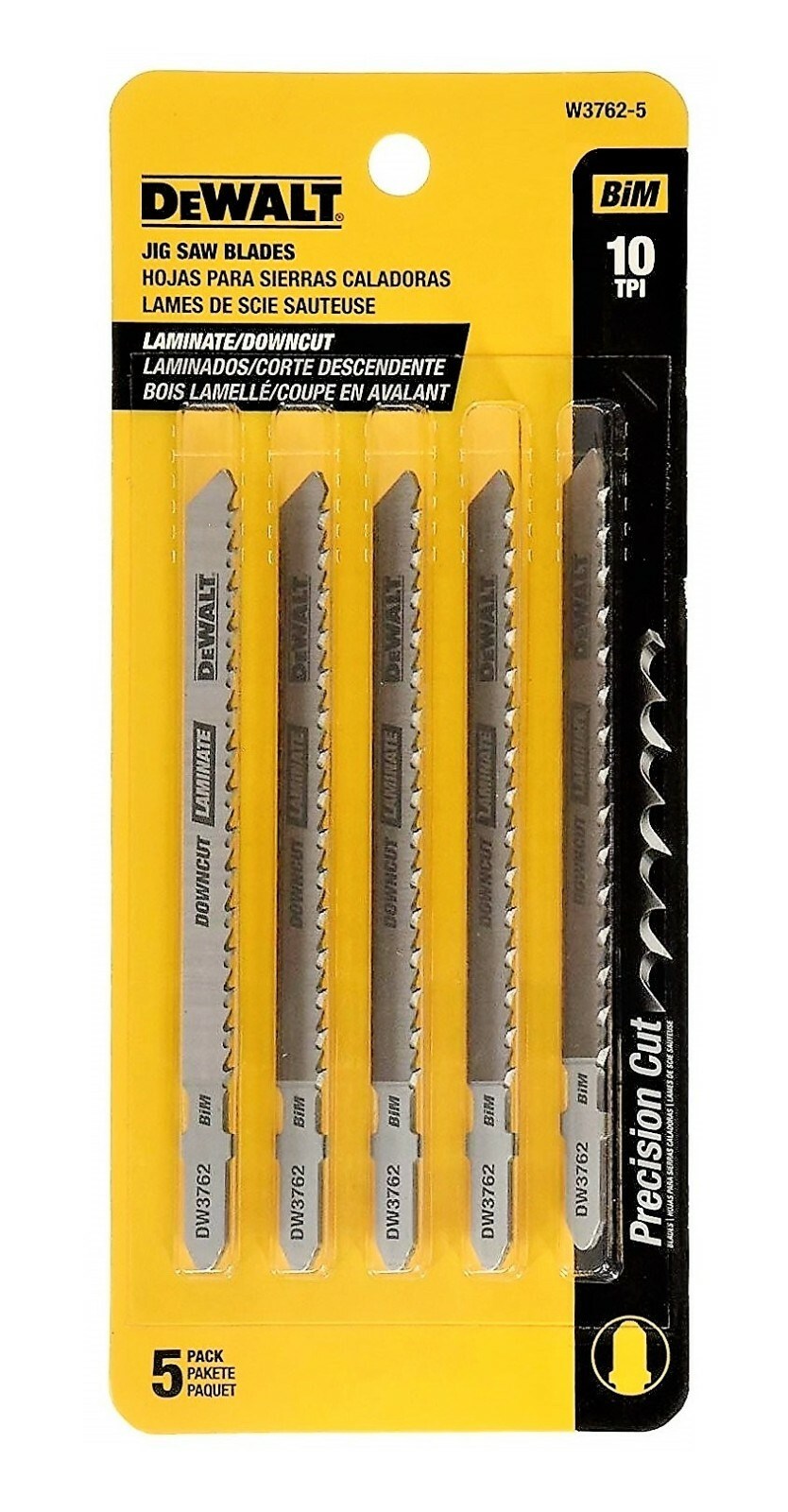 DEWALT T-SHANK LAMINATE DOWN CUTTING JIG SAW BLADE - 4"DeWalt's laminate down cutting jig saw blade is designed for laminate countertops and veneered materials. The reverse-tooth design cuts on the downstroke, minimizing chipping on the visible top surface for clean, professional results.