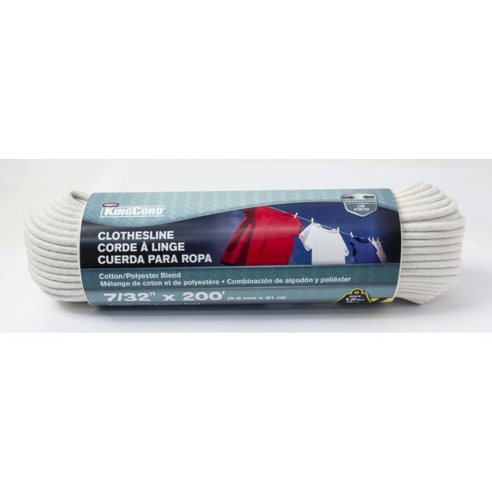 MIBRO DIAMOND BRAIDED COTTON CLOTHESLINE - 7/32" X 200 FTHang laundry with confidence using this Mibro diamond braided clothesline. The cotton and polyester blend combines the soft handling of cotton with the strength and durability of polyester, creating a line that resists stretching and maintains its round shape when running through pulleys.
