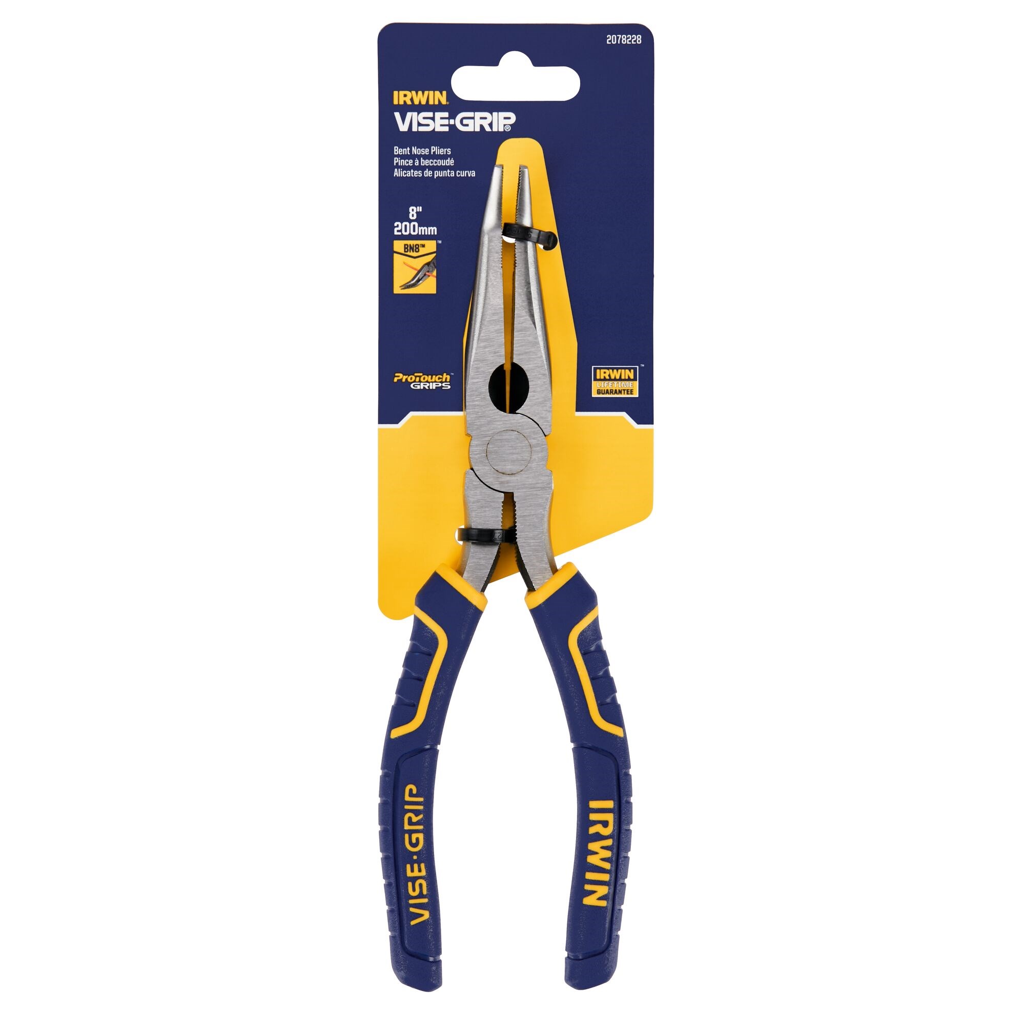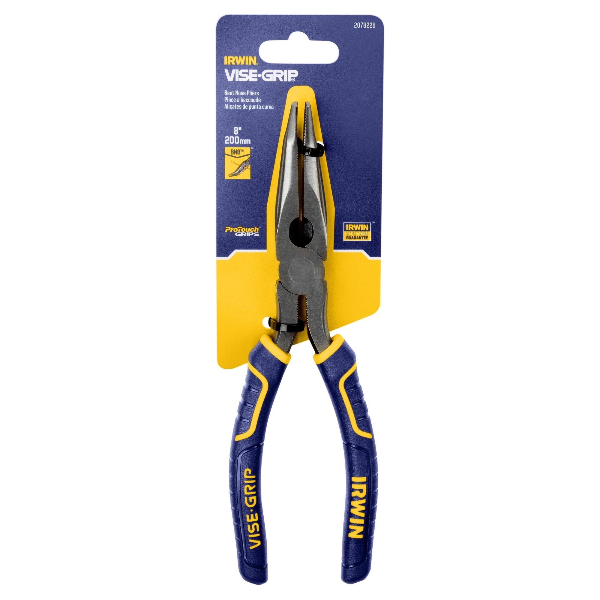 IRWIN 8" BENT LONG NOSE PLIERS (2078228)These Irwin 8-inch bent long nose pliers are built for accessing tight spaces and routing around obstructions where straight pliers cannot reach. The angled nose profile is ideal for electrical, plumbing, and automotive work in confined areas. Induction-hardened cutting edges stay sharp through heavy use.