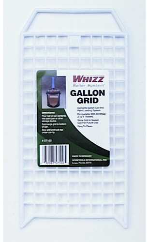 Paint bucket grid. Fits in a gallon can. Converts gallon can into paint loading system. Compatible with all whizz 2 inch and 4 inch rollers. Plastic construction. Will not rust. May be sealed-in can. Easy to clean.