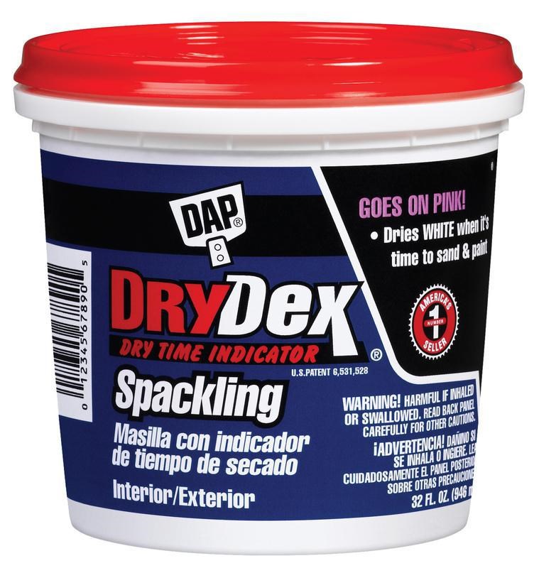 • DAP® DRYDex® Spackling may be used to fill holes and cracks in surfaces such as drywall, plaster, wood, brick and stone.  Its ready-to-use formula spreads easily for fast, professional repairs that will not crack, crumble or flake.