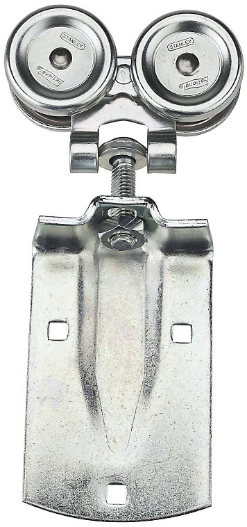 NATIONAL BOX RAIL HANGERDesigned for use with box rail on wood-frame sliding doors from 1- 1/2 inches to 2 inches thick. For use with rectangular box rails. Packed with two end caps and bolts for attaching door straps. Slot in top of door strap allows lateral and vertical adjustment. Durable one piece, precision formed steel. Each hardened axle has 12 hardened and precision-ground alloy steel roller-bearings. Delrin (tm) seals keep out dirt while holding in long-life grease. Safe Working Load - 300 lbs. per hanger.