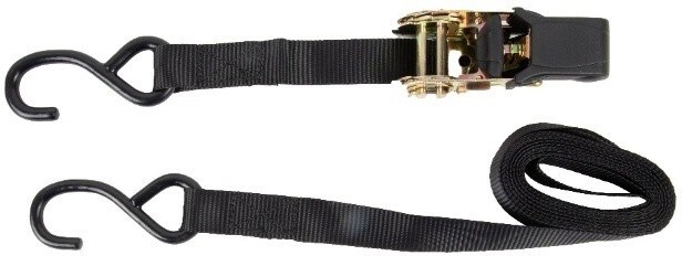 ERICKSON 1" x 12' RATCHET STRAP WITH S-HOOKSLight-duty ratchet tie-down strap with 12-foot reach for securing cargo on trucks, trailers, and utility vehicles. The S-hook ends connect quickly to anchor points while the ratchet mechanism provides controlled tension.