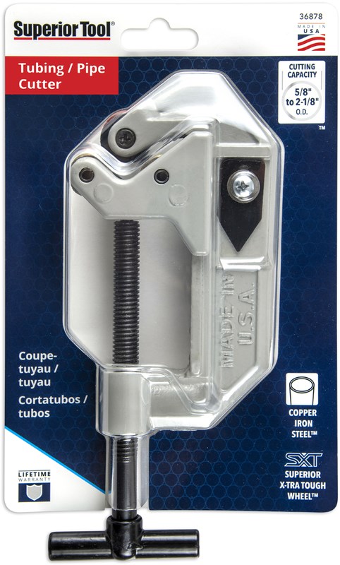 SUPERIOR TOOL COMBINATION PIPE AND TUBE CUTTER - 2-1/8"The Model ST2000 is a versatile combination cutter designed for both pipe and tubing. Strong, lightweight I-beam aluminum construction with a comfort non-slip polymer grip makes this tool easy to handle in tight spaces.