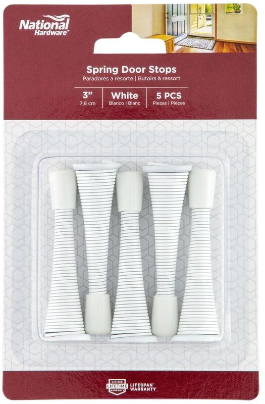 Protect your walls and door handles with this 3" spring door stop from National Hardware. The flexible steel spring absorbs impact while the rubber bumper tip cushions contact to prevent scuffs and dents.