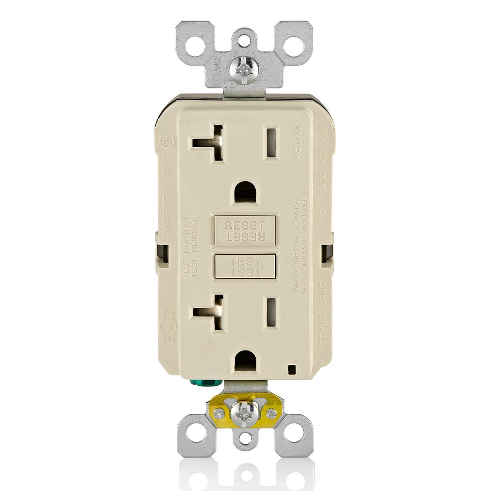 TAMPER RESISTANT SELF-TEST 20 AMP GFCI RECEPTACLEEmpower your space with a cutting-edge, tamper-resistant GFCI that combines innovative design with exceptional safety features, including monochromatic buttons, self-grounding clip, and advanced wiring capabilities, all backed by robust brass double wipe contacts and clamps.