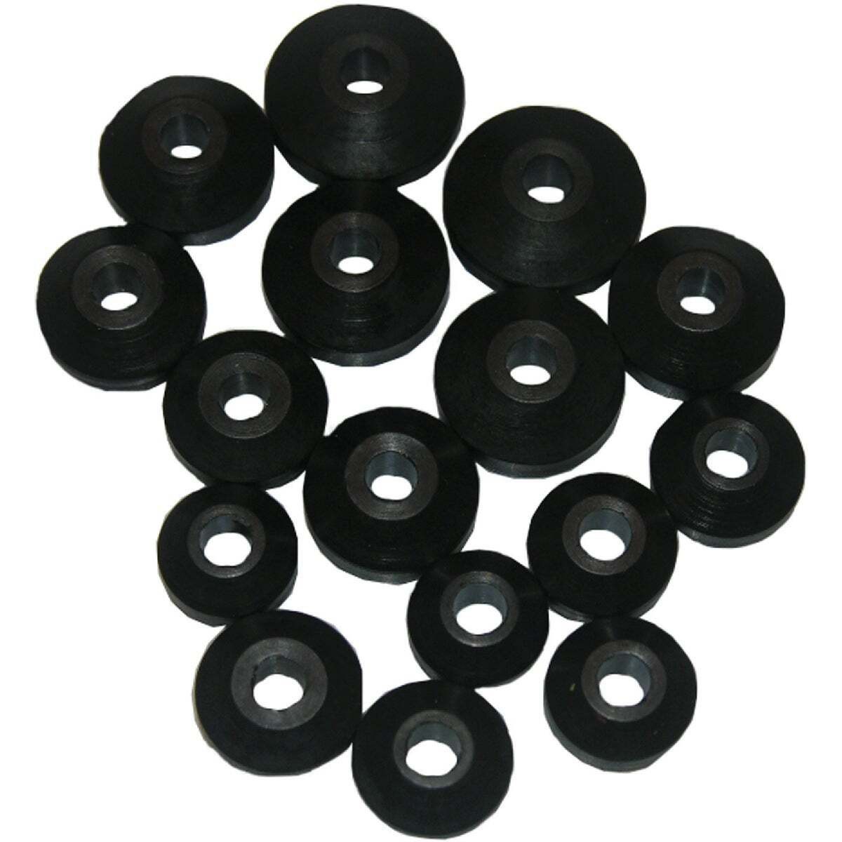 LASCO BEVELED BIBB WASHER ASSORTMENT 16 PACKRestore dripping compression-style faucets with this assortment of beveled bibb washers from Larsen Supply. The 16-piece kit includes multiple sizes to fit most standard faucet stems, making it ideal for home repair and maintenance.