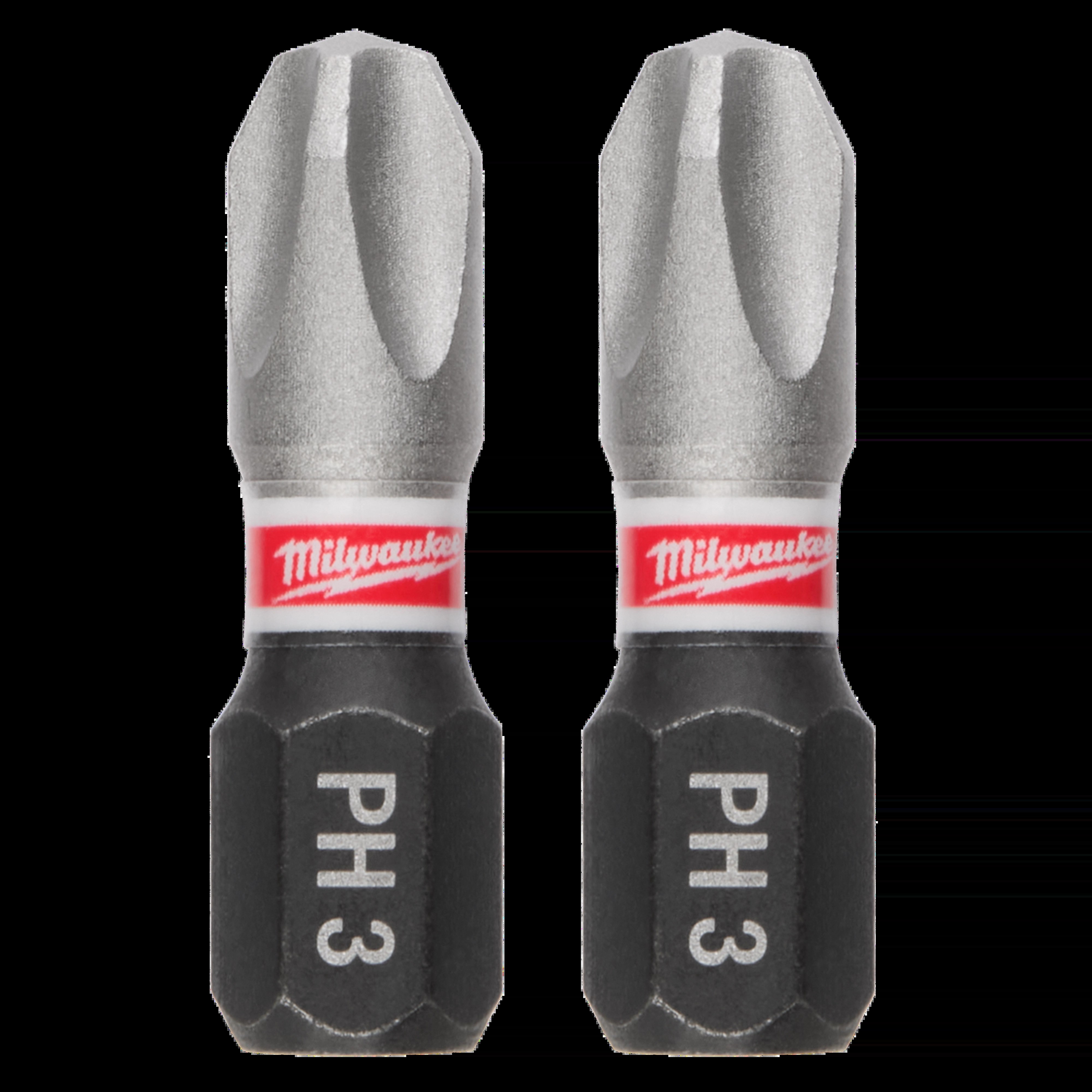 MILWAUKEE SHOCKWAVE IMPACT DUTY PHILLIPS #3 INSERT BITS - 2 PACKMilwaukee SHOCKWAVE Impact Duty 1" Phillips #3 insert bits are engineered for maximum life in impact drivers and drill/drivers. The compact 1" length is designed for use with magnetic bit holders for quick bit changes.