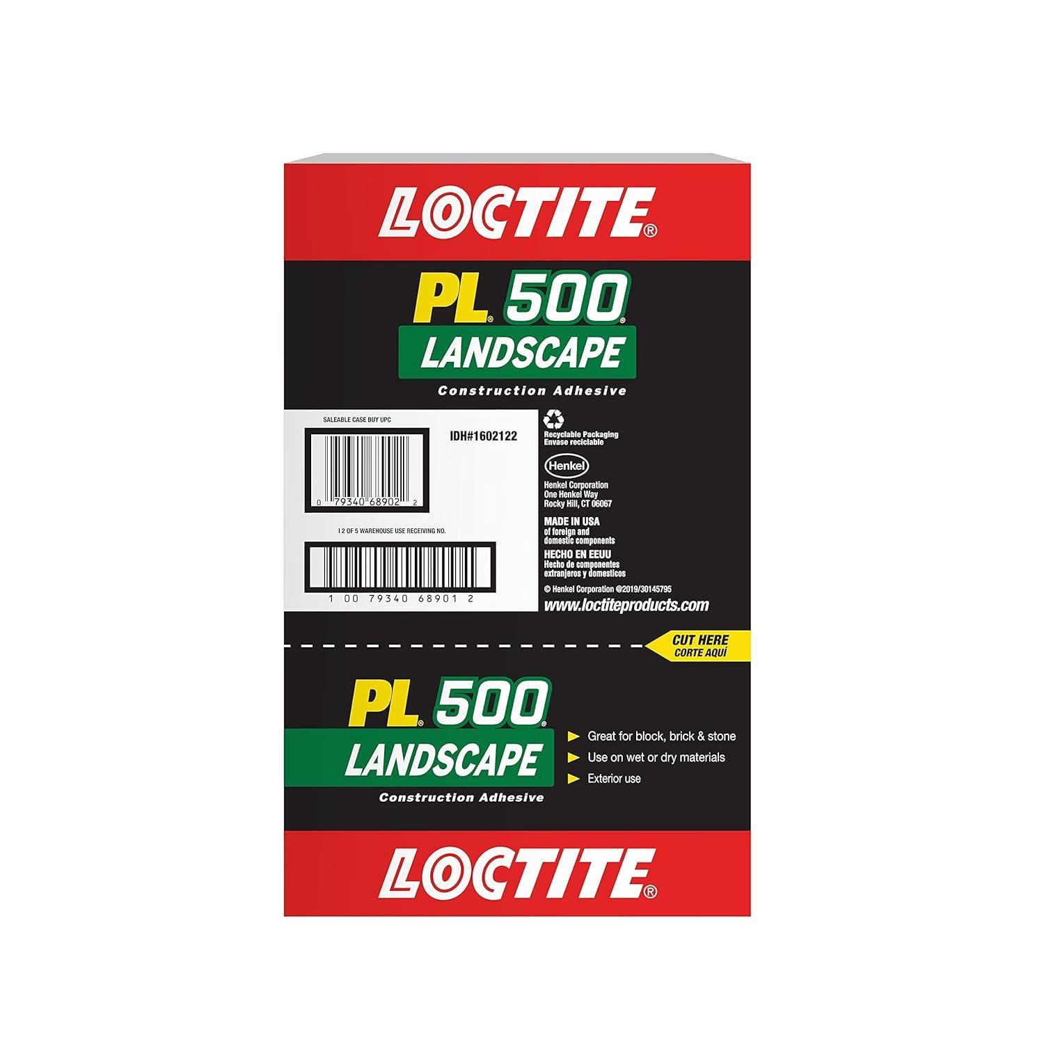 LOCTITE PL 500 LANDSCAPE BLOCK ADHESIVEBond landscape blocks, pavers, and stone securely with Loctite PL 500. This VOC-compliant construction adhesive provides a strong, waterproof bond for outdoor hardscape projects and dries to a tan color that blends with natural materials.