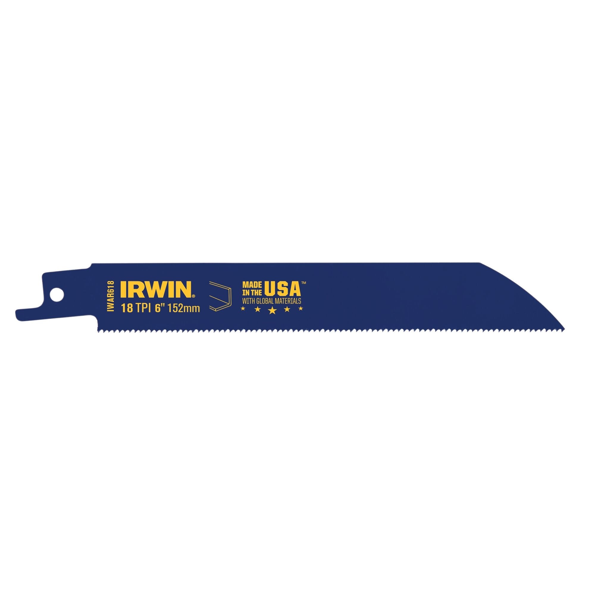 18 TPIDesigned for cutting all metals including non-ferrous, pipe, conduit, stainless steel, and sheet metal, this 6" blade features 18 teeth per inch for clean cuts in materials 1/8" to 1/2" thick. Irwin WeldTec blades use bi-metal construction with 8% cobalt high-speed steel teeth for longer cutting life in demanding applications.