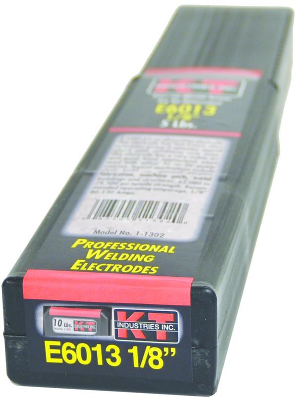 AWS E6013 WELDING ELECTRODE - 1/8", 10 LBK-T Industries E6013 electrodes are versatile all-position stick welding rods with a high-titania potassium coating for smooth, stable arc performance. This 10 lb box is the value size for shops and frequent welders. Works with AC, DCEP, or DCEN power sources.