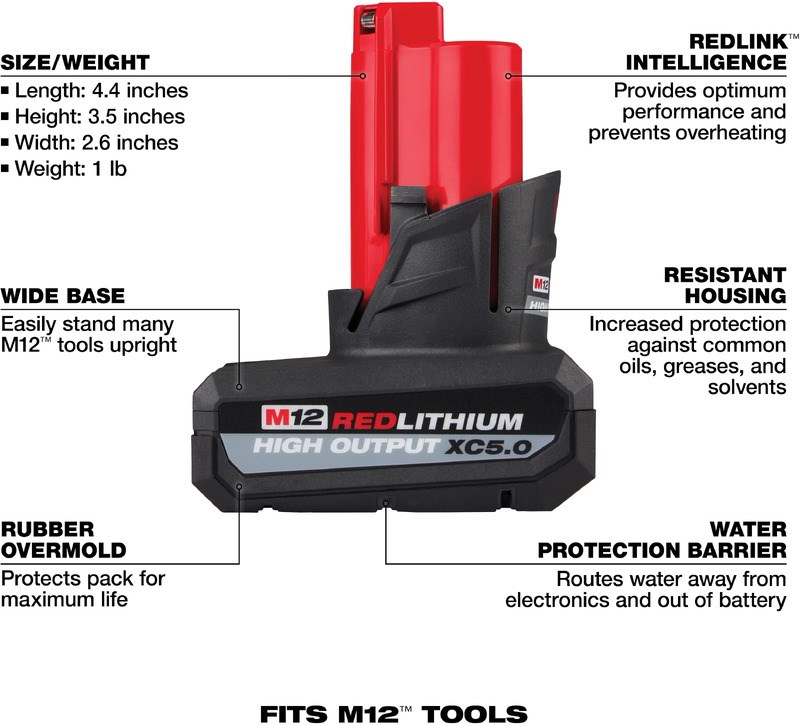 M12 REDLITHIUM HIGH OUTPUT XC5.0 BATTERY PACK