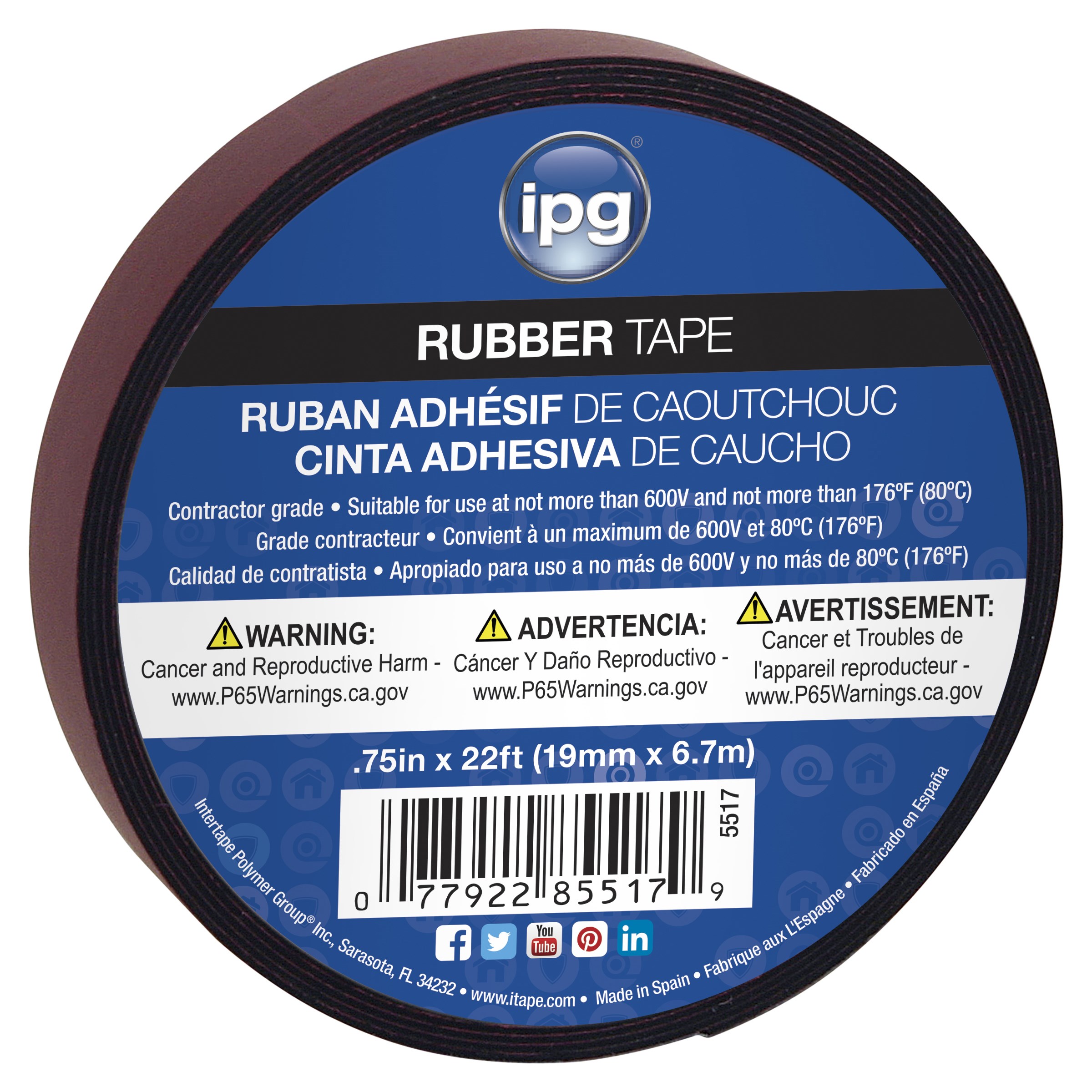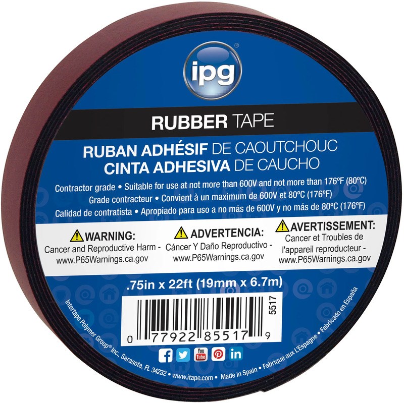 INTERTAPE RUBBER ELECTRICAL TAPE - 3/4" x 22 FTSelf-amalgamating rubber electrical tape that conforms to irregular shapes and surfaces for a void-free, electrically stable buildup. Rated for use up to 600 volts, this tape is used in conjunction with friction and vinyl tape around split bolt connections, terminal lugs, and compression connectors.