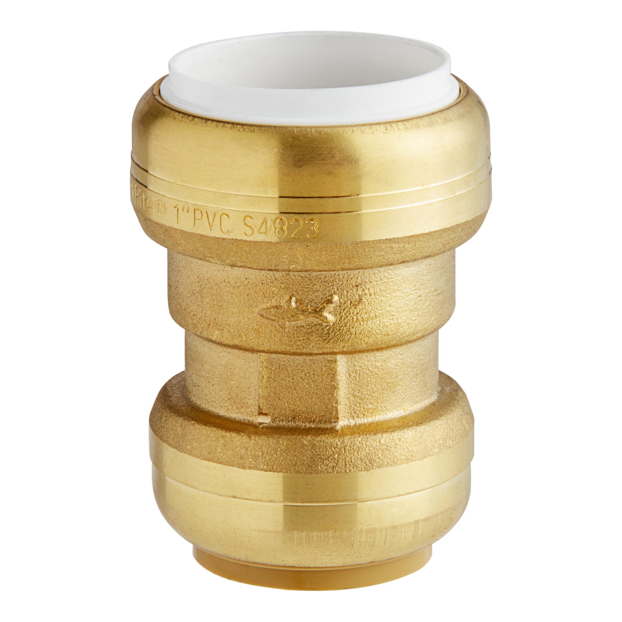 SHARKBITE PVC TO CTS TRANSITION COUPLING - 1"The SharkBite push-to-connect PVC transition coupling makes it easy to connect PVC pipe to copper, PEX, CPVC, or PE-RT pipe without soldering, glue, clamps, or unions. The color-coded design ensures correct pipe insertion - white collar for PVC, tan collar for CTS pipe.