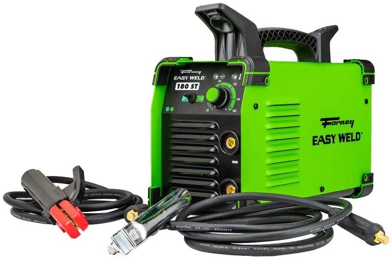 • Features 8" ground clamp, 8" electrode holder, 8' power cord. Integrated handle and cable wrap