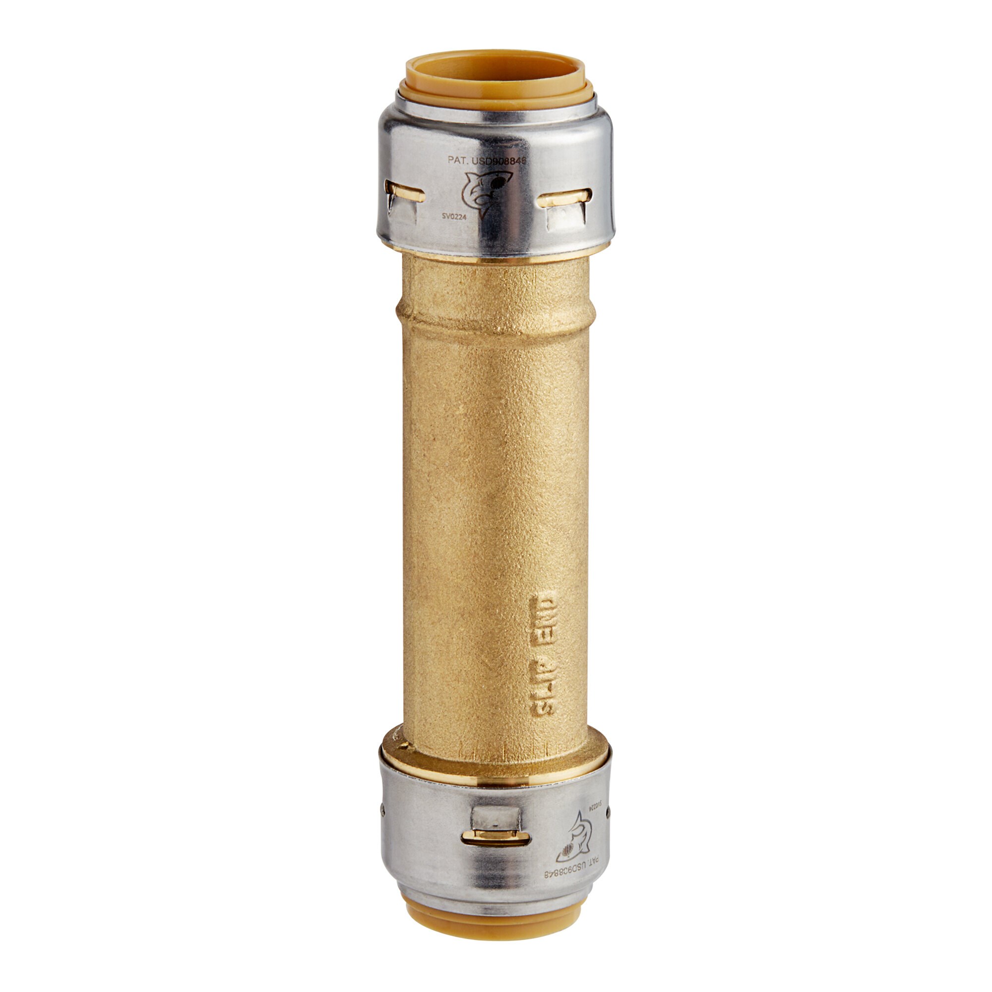 SHARKBITE REPAIR COUPLINGThe SharkBite repair coupling is a push-fit slip fitting designed for quick pipe repairs without soldering, gluing, or special tools. Unlike standard couplings, the repair coupling features a stop on only one end, allowing it to slide over existing pipe for in-line repairs. One fitting does the job of two couplings and extra pipe, saving time and materials.